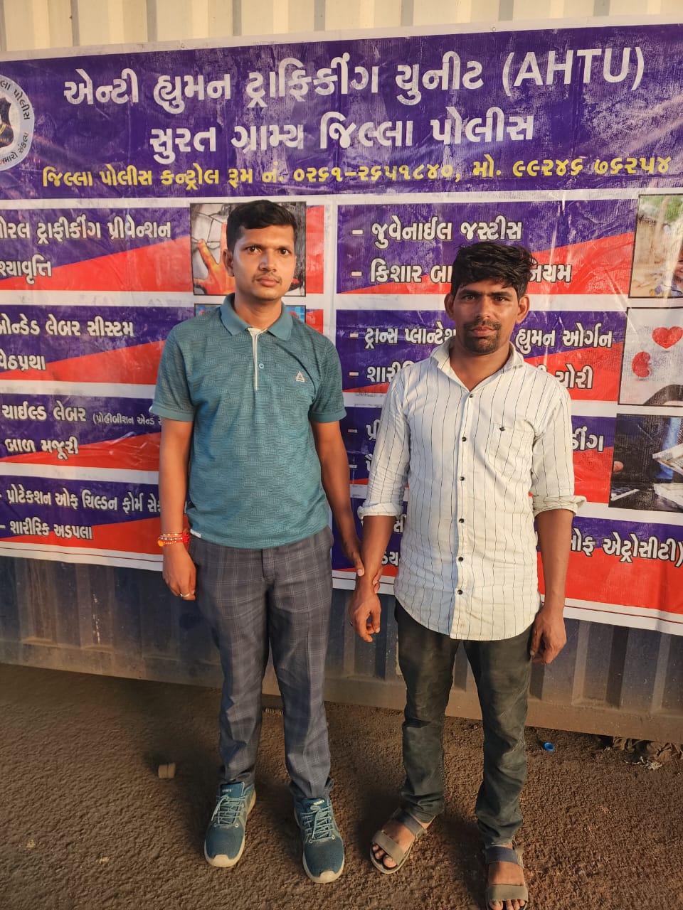 જે સુચના અનુસંધામાં પોલીસ કરંજ કબ્રસ્તાન પાસે માંડવી તરફ જવાના રસ્તે ઝમ ઝમ કેટરર્સ બિરીયાની હોટલ ના માલીકે પોતાના હોટલમાં એક ૧૩ વર્ષ ના બાળ કિશોરને હોટલમાં મજુરી કામે રાખી તેની પાસે ૧૪ કલાક મજુરી કામ કરાવી તેને પુરતુ વેતન નહી આપી તેનુ શોષણ કરતો હોવાની બાતમી મળી હતી જે બાતમીના આધારે AHTU ની ટીમ દ્વારા ઝમ-ઝમ બિરીયાની હોટલ માંથી એક બાળ કિશોર ઉ.વ ૧૩ રહે. હાજીપુર તા. કાપણી જી. અરવલ્લ બીહાર મળી આવેલ તેને રેસકયુ કરી વિ.આર.પોપાવાલા આશ્રમ કતારગામ સુરત ખાતે રાખવામાં આવ્યો છે તેમજ હોટલના સંચાલક સલામુદીન રુસ્તમઅલી શેખ ઉ.વ ૩૩ રહે. શૈફી નગર, અમ્માર એપાર્ટમેન્ટની સામે,ગોધરા રોડ દાહોદ તથા મુળ રહે. બહારેજ પોસ્ટ તા.કુવારી ધર્મનપુર ઉત્તર પ્રદેશના વિરુદ્ધમાં જીવેનાઈલ જસ્ટીસ એકટ તેમજ બાળ તરુણ ( પ઼તિબંધીત અને નિયમન) કાયદા મુજબ કાયદેસર ની કાર્યવાહી કરી આરોપીને ડિટેઈન કરી આગળની કાર્યવાહી માટે માંડવી પોલીસ ને સોંપવામાં આવેલ હતી.