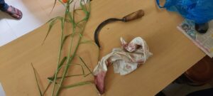 કલાબેનના હાથમાં ઘાસ કાપવાનું દાતરડું હતું.જે દાતરડું સ્વબચાવમાં તેઓએ બુમાબુમ કરી આમ તેમ ફેરવવાનું શરૂ કર્યું હતું. જે દાતરડાથી અજાણ્યા યુવાનને જમણા ભાગે માથાના ભાગે તેમજ બન્ને હાથે સામાન્ય ઇજાઓ થતા મહિલાએ કરેલા પડકારથી ગભરાઈને યુવાન નજીકમાં આવેલ શેરડીના ખેતરમાં ભાગી ગયો હતો.