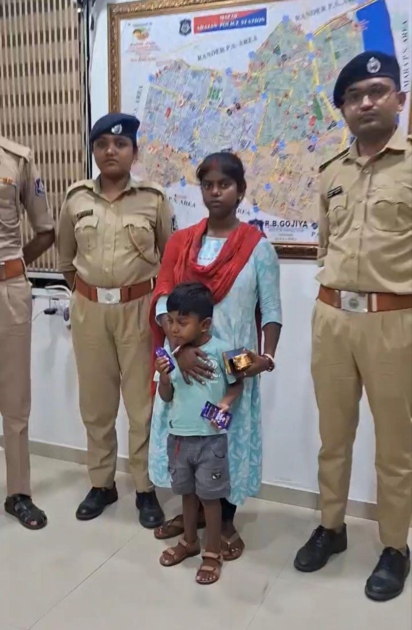 હ્યુમન સોર્સ અને ભાષાના આધારે ગણતરીની મિનિટોમાં જ બાળકના પરિવારની ભાળ મેળવતી અડાજણ પોલીસ