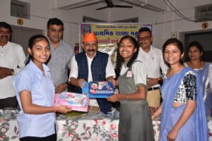 ધારાસભ્યશ્રીએ ભૂલકાઓ સાથે ભાવનાત્મક સંવાદ સાધી ભાર વગરના ભણતર માટે બાળકોને પ્રોત્સાહિત કર્યા હતા. શાળાની બાળાઓએ સુંદર ગીતો પર અભિનયકૃતિઓ રજૂ કરી હતી.