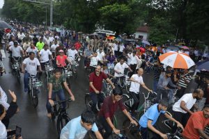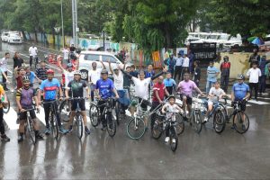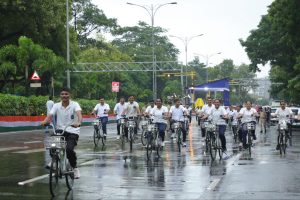 પોલીસ પરેડ ગ્રાઉન્ડથી ૧૫૦૦થી વધુ સાયક્લિસ્ટોએ ભરવરસાદમાં ૧૩ કિલોમીટર સાયકલ ચલાવી ‘ફિટ ઈન્ડિયા’નો સંદેશો આપ્યો