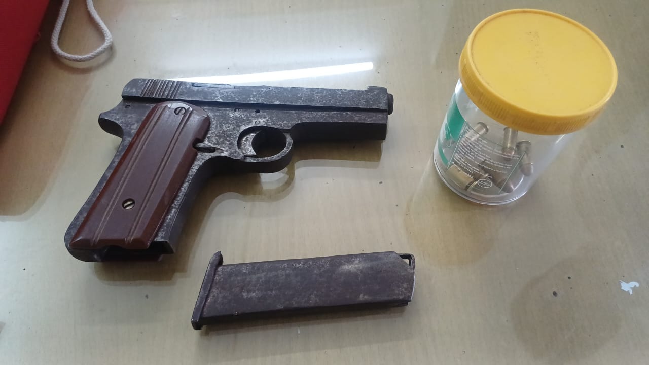 મહુવા તાલુકાના ડુંગરી ગામના યુવાન પાસેથી મહુવા પોલીસે મેગઝીનમા કાટીઝ સાથેની દેશી હાથ બનાવટની પિસ્તોલ ઝડપી પાડી હતી.પોલીસે પિસ્તોલ સાથે ફરતા યુવાનની ધરપકડ કરી કાયદેસરની કાર્યવાહી હાથ ધરી હતી.